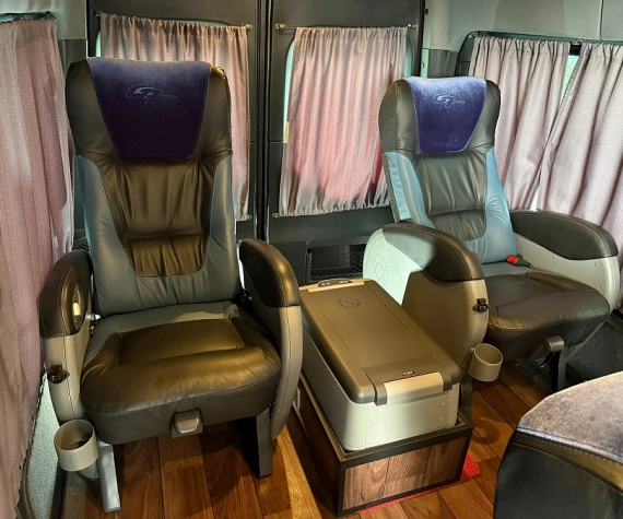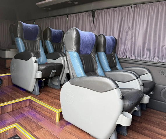 • Executivos, com apoio para cabeça, pés e laterais — conforto premium para todas as viagens.